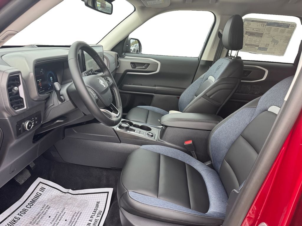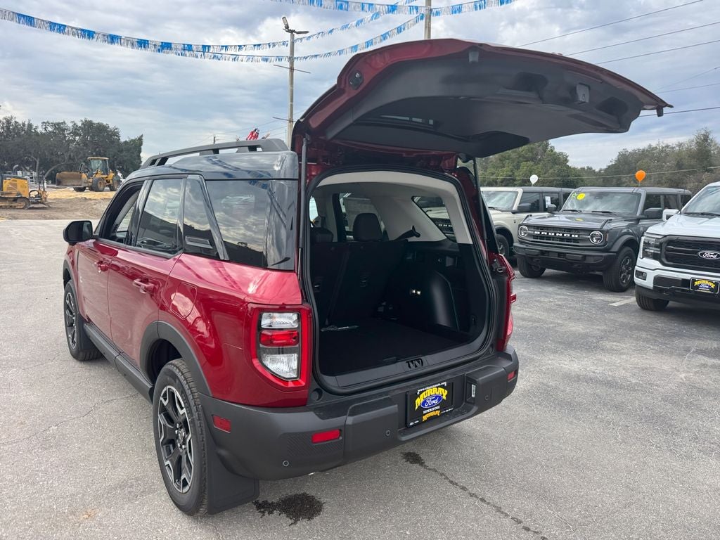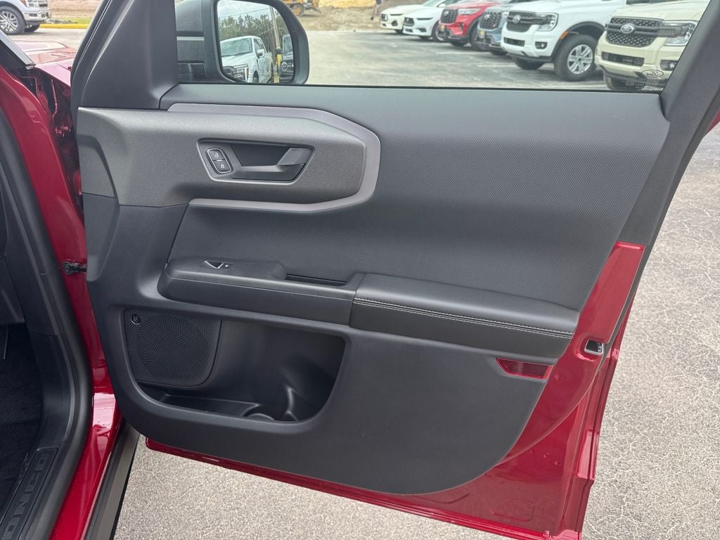 Murray Ford Superstore of Starke is proud to offer this gorgeous 2025 Ford Bronco Sport in Ruby Red Metallic Tinted Clearcoat This vehicle is readily available and comes with the following Equipment Group 300A, Outer Banks Tech Package+ (B&O Sound System by Bang & Olufsen, Connected Navigation, and HD Radio), Bronco Sport Outer Banks 300A, 4D Sport Utility, 1.5L EcoBoost, 8-Speed Automatic, 4WD, Ruby Red Metallic Tinted Clearcoat, Platinum Blue w/Premium Trimmed Front Bucket Seats w/Platinum Blue, 4-Wheel Disc Brakes, ABS brakes, Air Conditioning, Auto High-beam Headlights, Auto-dimming Rear-View mirror, Automatic temperature control, Brake assist, Compass, Delay-off headlights, Driver door bin, Driver vanity mirror, Dual front impact airbags, Dual front side impact airbags, Electronic Stability Control, Emergency communication system: SYNC 4 911 Assist, Four wheel independent suspension, Front anti-roll bar, Front Bucket Seats, Front Center Armrest, Front dual zone A/C, Front fog lights, Front reading lights, Fully automatic headlights, Garage door transmitter, Heated door mirrors, Heated front seats, Heated steering wheel, Illuminated entry, Knee airbag, Low tire pressure warning, Memory seat, Occupant sensing airbag, Outside temperature display, Overhead airbag, Overhead console, Panic alarm, Passenger door bin, Passenger vanity mirror, Power door mirrors, Power driver seat, Power Moonroof, Power passenger seat, Power steering, Power windows, Premium Trimmed Front Bucket Seats w/Platinum Blue, Rain sensing wipers, Rear anti-roll bar, Rear Parking Sensors, Rear reading lights, Rear seat center armrest, Rear window defroster, Rear window wiper, Remote keyless entry, Security system, Speed control, Speed-sensing steering, Split folding rear seat, Steering wheel mounted audio controls, SYNC 4 w/Enhanced Voice Recognition, Tachometer, Telescoping steering wheel, Tilt steering wheel, Traction control, Trip computer, Wheels: 18 Ebony Black-Painted Aluminum, 6 Speakers, AM/FM radio: SiriusXM, AM/FM Stereo, Radio data system, SiriusXM, Speed-Sensitive Wipers, and Variably intermittent wipers;