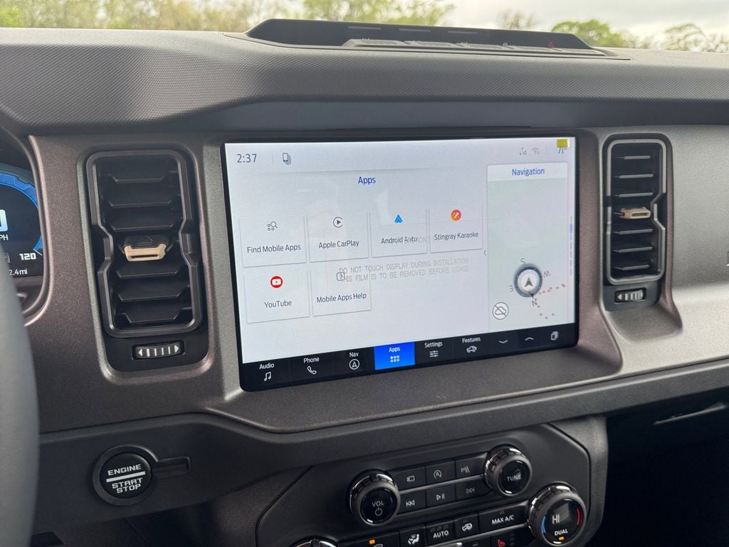 Murray Ford Superstore of Starke is excited to offer this stunning 2026 Ford Bronco in Marsh Gray This vehicle is readily available and comes with the following Equipment Group 334A Lux Package (2-Door Intelligent Access with Lock/Unlock, 360-Degree Camera, Adaptive Cruise Control, Ambient Footwell Lighting, Connected Navigation, Driver and Front Passenger Illuminated Sliding Visor Vanity Mirrors, Dual Smart Charging USB Ports, Dual-Zone Electronic Automatic Temperature Control, Evasive Steering Assist, Front Parking Sensors, Front Row Heated Seats, Heated Steering Wheel, Information on Demand Panel, Marine Grade Vinyl Heated Bucket Seats, Pro Power Onboard - 400W, Radio: B&O Sound System by Bang and Olufsen, Rear Parking Sensors, Sideview Mirrors, and Wheels: 17 Carbonized Gray-Painted Aluminum), Ford Connectivity Package (1-Year Included), Ford Integrated Tether System (FITS) Accessory Package (Bronco-Branded Console Cupholder), Bronco Badlands 334A, 4D Sport Utility, 2.7L EcoBoost V6, 10-Speed Automatic, 4WD, Marsh Gray, Black Onyx w/Leather-Trimmed/Vinyl Bucket Seats, 4-Wheel Disc Brakes, 4.7 Axle Ratio, 7 Speakers, ABS brakes, Air Conditioning, AM/FM radio: SiriusXM with 360L, AM/FM Stereo, Auto High-beam Headlights, Auto-dimming Rear-View mirror, Brake assist, Compass, Delay-off headlights, Driver door bin, Driver vanity mirror, Dual front impact airbags, Dual front side impact airbags, Electronic Stability Control, Emergency communication system: 911 Assist, Exterior Parking Camera Rear, Front anti-roll bar, Front Bucket Seats, Front Center Armrest, Front fog lights, Front reading lights, Front Row Top Panels and Door Storage Bags, Front wheel independent suspension, Fully automatic headlights, Hard Top Sound Deadening Headliner, Heated door mirrors, Heated front seats, Illuminated entry, Integrated roll-over protection, Leather Shift Knob, Low tire pressure warning, Occupant sensing airbag, Outside temperature display, Overhead airbag, Overhead console, Panic alarm, Passenger door bin, Passenger vanity mirror, Power door mirrors, Power steering, Power windows, Radio data system, Raptor-Style Running Board, Rear-Window Defroster and Washer, Remote keyless entry, Security system, Shadow Black Painted Hard Top, SiriusXM with 360L, Speed control, Split folding rear seat, Steering wheel mounted audio controls, SYNC 4, Tachometer, Telescoping steering wheel, Tilt steering wheel, Traction control, Trip computer, Variably intermittent wipers, and Voltmeter;