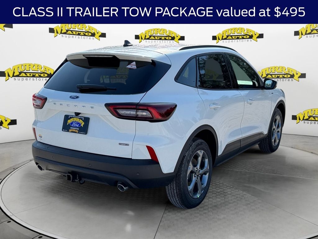 Murray Ford Superstore of Starke is pumped up to offer this gorgeous-looking 2026 Ford Escape Hybrid in Star White Metallic Tri-Coat This vehicle is readily available and comes with the following Class II Trailer Tow Package, Equipment Group 400A (2.91 Axle Ratio, Electronic Fuel Door Release, Ford App, Neutral Towing Capability, Pedestrian Alert Sounder, Wheels: 18 Rock Metallic Painted Aluminum, and SYNC 4), Tech Pack #1 (Ford Co-Pilot360 Assist+, Intersection Assist, Predictive Speed Assist, and Rear Parking Sensor), Escape Hybrid ST-Line Select 400A, 4D Sport Utility, 2.5L iVCT, eCVT, AWD, Star White Metallic Tri-Coat, Ebony w/Heated Vinyl/Cloth Front Sport Contour Bucket Seats, 4-Wheel Disc Brakes, ABS brakes, Auto High-beam Headlights, Automatic temperature control, Brake assist, Bumpers: body-color, Compass, Delay-off headlights, Driver door bin, Driver vanity mirror, Dual front impact airbags, Dual front side impact airbags, Electronic Stability Control, Emergency communication system: SYNC 4 911 Assist, Four wheel independent suspension, Front anti-roll bar, Front Bucket Seats, Front Center Armrest, Front dual zone A/C, Front fog lights, Front reading lights, Fully automatic headlights, Heated door mirrors, Heated front seats, Heated steering wheel, Illuminated entry, Knee airbag, Low tire pressure warning, Occupant sensing airbag, Outside temperature display, Overhead airbag, Overhead console, Panic alarm, Passenger door bin, Passenger vanity mirror, Power door mirrors, Power driver seat, Power Liftgate, Power steering, Power windows, Rear anti-roll bar, Rear reading lights, Rear seat center armrest, Rear window defroster, Rear window wiper, Remote keyless entry, Speed control, Speed-sensing steering, Speed-Sensitive Wipers, Split folding rear seat, Spoiler, Sport steering wheel, Steering wheel mounted audio controls, Tachometer, Telescoping steering wheel, Tilt steering wheel, Traction control, Trip computer, Variably intermittent wipers, 6 Speakers, Air Conditioning, and Radio data system;