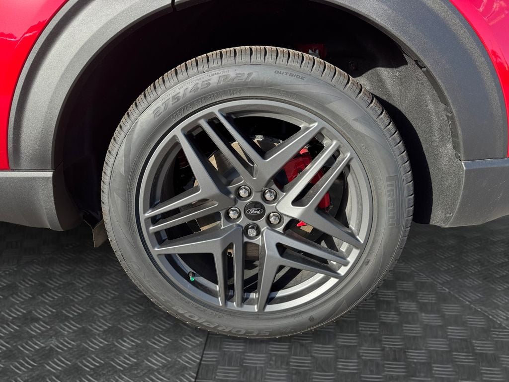 Murray Ford Superstore of Starke is proud to offer this stunning 2026 Ford Explorer in Rapid Red Metallic Tinted Clearcoat This vehicle is readily available and comes with the following Equipment Group 300A Standard Package (Heated Unique Cloth Captain's Chairs), Premium Package (110V/150W AC Power Outlet, 2nd Row Heated Seats, Ambient Lighting, Auto-Dimming Interior Rear-View Mirror, Manual-Folding Sideview Mirrors, and Memory Driver's Seat), ST-Line Street Pack (Performance Brakes and Wheels: 21 Magnetite-Painted Aluminum), Explorer ST-Line 300A, 4D Sport Utility, 2.3L EcoBoost I-4, 10-Speed Automatic, RWD, Rapid Red Metallic Tinted Clearcoat, Dark Space Gray w/Unique Cloth Captain's Chairs or Unique Cloth Heated Captain's Chairs, 10 Speakers, 3rd row seats: bench, 4-Wheel Disc Brakes, ABS brakes, AM/FM radio: SiriusXM with 360L, Apple CarPlay/Android Auto, Auto High-beam Headlights, Brake assist, Bumpers: body-color, Compass, Delay-off headlights, Driver door bin, Driver vanity mirror, Dual front impact airbags, Dual front side impact airbags, Electronic Stability Control, Emergency communication system: 911 Assist, Exterior Parking Camera Rear, Four wheel independent suspension, Front anti-roll bar, Front Bucket Seats, Front Center Armrest, Front dual zone A/C, Front fog lights, Front reading lights, Fully automatic headlights, Garage door transmitter, Heated door mirrors, Heated front seats, Heated steering wheel, Illuminated entry, Knee airbag, Leather steering wheel, Low tire pressure warning, Navigation System, Occupant sensing airbag, Outside temperature display, Overhead airbag, Overhead console, Panic alarm, Passenger door bin, Passenger vanity mirror, Power door mirrors, Power driver seat, Power Liftgate, Power passenger seat, Power steering, Power windows, Pre-Collision Assist, Rear air conditioning, Rear anti-roll bar, Rear reading lights, Rear window defroster, Rear window wiper, Remote keyless entry, Security system, Speed control, Speed-sensing steering, Speed-Sensitive Wipers, Split folding rear seat, Spoiler, Steering wheel mounted audio controls, Tachometer, Telescoping steering wheel, Tilt steering wheel, Traction control, Trip computer, Variably intermittent wipers, Air Conditioning, and Automatic temperature control;