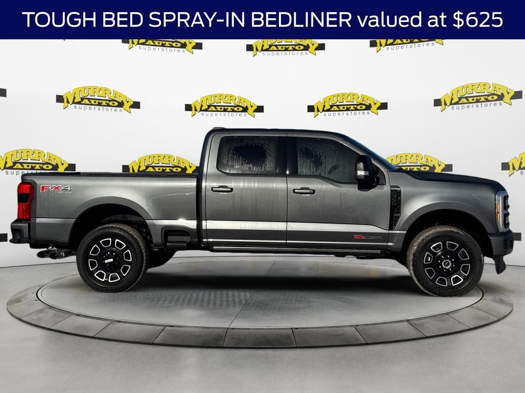 Murray Ford Superstore of Starke is very proud to offer this reliable 2026 Ford F-350SD in Carbonized Gray Metallic This vehicle is readily available and comes with the following 5th Wheel/Gooseneck Hitch Prep Package, Ford Connectivity Package (1-Year Included), FX4 Off-Road Package (Hill Descent Control, Off-Road Specifically Tuned Shock Absorbers, and Unique FX4 Off-Road Box Decal), Internet access capable: 5G Modem - Ford Connectivity Package, Order Code 713A (Flow-Through Console, Radio: B&O Unleashed Sound System by Bang & Olufsen, SiriusXM with 360L, SYNC 4 with Enhanced Voice Recognition, Unique Platinum Leather 40/Console/40 Seats, and Wheels: 20 Bright Machined and Painted Aluminum), F-350SD Platinum 713A, 4D Crew Cab, 6.7L High Output Power Stroke V8 Diesel, 10-Speed Automatic, 4WD, Carbonized Gray Metallic, Black Onyx/Platinum Blue w/Unique Platinum Leather 40/Console/40 Seats, 250 Amp Alternator, 34 Gallon Fuel Tank, 4-Wheel Disc Brakes, ABS brakes, Adjustable pedals, Air Conditioning, All-Weather Floor Mats, AM/FM radio: SiriusXM with 360L, Auto High-beam Headlights, Auto-dimming Rear-View mirror, Automatic temperature control, Brake assist, Compass, Delay-off headlights, Driver door bin, Driver vanity mirror, Dual front impact airbags, Dual front side impact airbags, Electronic Stability Control, Electronic-Locking with 3.55 Axle Ratio, Emergency communication system: SYNC 4 911 Assist, Front anti-roll bar, Front Bucket Seats, Front Center Armrest, Front dual zone A/C, Front fog lights, Front License Plate Bracket, Front reading lights, Fully automatic headlights, Garage door transmitter, Heated door mirrors, Heated front seats, Heated rear seats, Heated steering wheel, Illuminated entry, Low tire pressure warning, Memory seat, Navigation system: Connected Navigation, Outside temperature display, Overhead airbag, Overhead console, Panic alarm, Passenger door bin, Passenger vanity mirror, Pedal memory, Power door mirrors, Power driver seat, Power passenger seat, Power steering, Power windows, Power-Deployable Running Boards, Rain sensing wipers, Rear reading lights, Rear seat center armrest, Rear step bumper, Rear window defroster, Remote keyless entry, Retractable Rear Corner Bed Step, SecuriCode Keyless Entry Keypad (driver's Side), Security system, Speed control, Split folding rear seat, Steering wheel mounted audio controls, Tachometer, Telescoping steering wheel, Tilt steering wheel, Tough Bed Spray-in Bedliner, Traction control, Trip computer, Turn signal indicator mirrors, Twin Panel Power Moonroof, Upfitter Switches (6), Variably intermittent wipers, and Ventilated front seats;