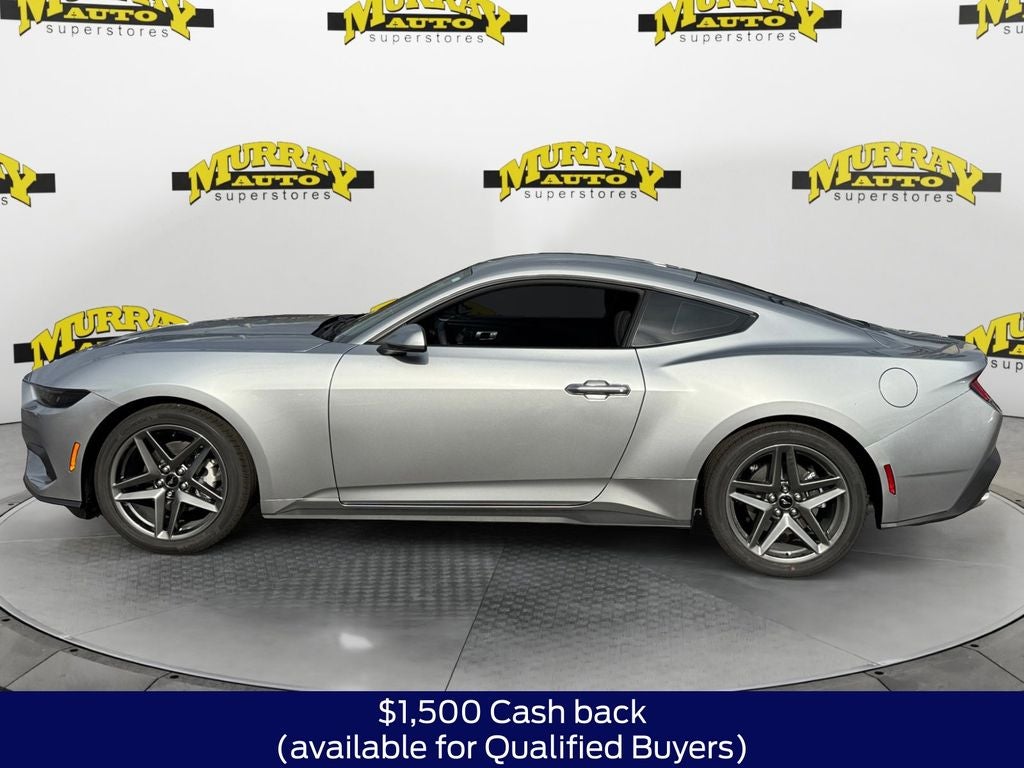 Murray Ford Superstore of Starke is excited to offer this fantastic 2026 Ford Mustang in Iconic Silver Metallic This vehicle is readily available and comes with the following Equipment Group 100A Standard Package (AM/FM Stereo, Cloth Bucket Seats, and SYNC 4), Mustang EcoBoost 100A, 2D Coupe, EcoBoost 2.3L I4 GTDi DOHC Turbocharged VCT, 10-Speed Automatic, RWD, Iconic Silver Metallic, Black Onyx w/Cloth Bucket Seats, 4-Wheel Disc Brakes, ABS brakes, Air Conditioning, Auto High-beam Headlights, Automatic temperature control, Brake assist, Bumpers: body-color, Compass, Delay-off headlights, Driver door bin, Driver vanity mirror, Dual front impact airbags, Dual front side impact airbags, Electronic Stability Control, Emergency communication system: 911 Assist, Exterior Parking Camera Rear, Four wheel independent suspension, Front anti-roll bar, Front Bucket Seats, Front Center Armrest, Front dual zone A/C, Front reading lights, Fully automatic headlights, Illuminated entry, Knee airbag, Leather Shift Knob, Low tire pressure warning, Occupant sensing airbag, Outside temperature display, Overhead airbag, Overhead console, Panic alarm, Passenger door bin, Passenger vanity mirror, Power door mirrors, Power steering, Power windows, Radio data system, Rain sensing wipers, Rear anti-roll bar, Rear Parking Sensors, Rear window defroster, Remote keyless entry, Speed control, Speed-sensing steering, Speed-Sensitive Wipers, Split folding rear seat, Sport steering wheel, Steering wheel mounted audio controls, Tachometer, Telescoping steering wheel, Tilt steering wheel, Traction control, Trip computer, Variably intermittent wipers, Voltmeter, and Wheels: 19 x 8.5 Premier Polished Aluminum;