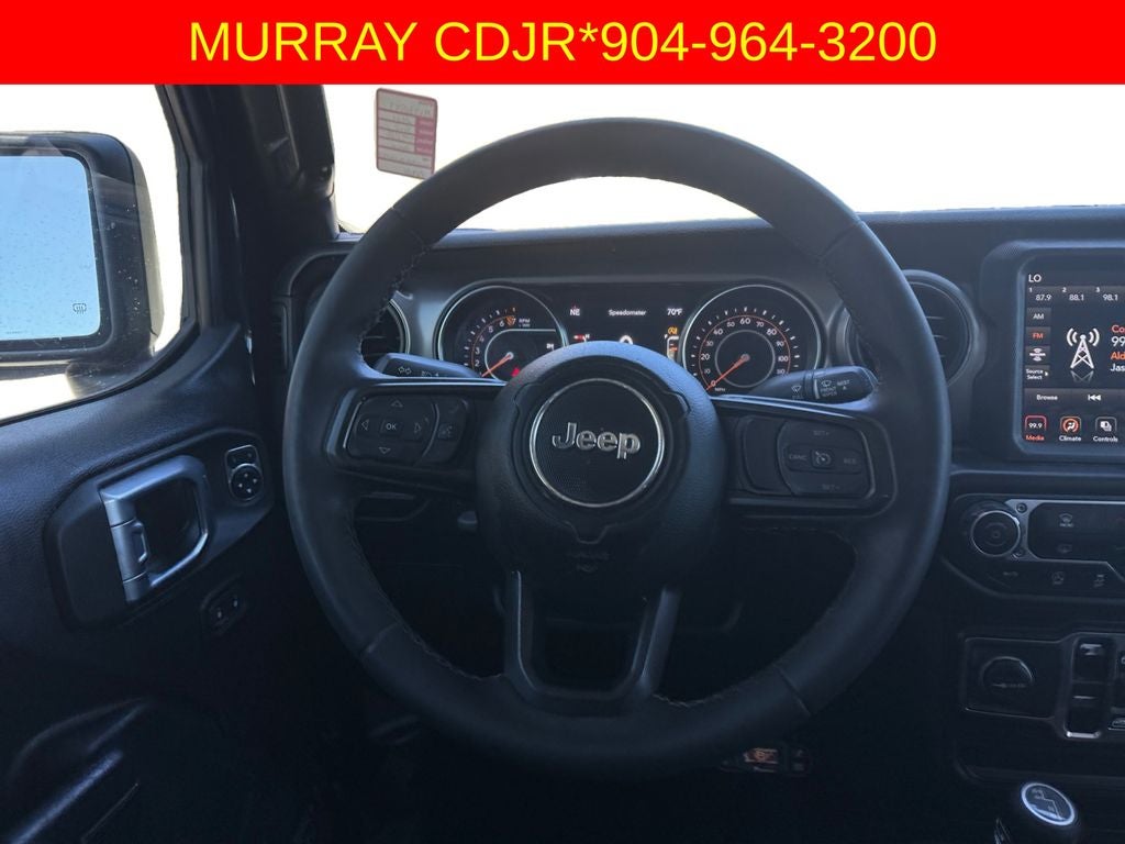 **BACKUP CAMERA**, **Bluetooth®, HANDS-FREE**, **KEYLESS ENTRY**, **PUSH BUTTON START**, **POWER WINDOWS**, **POWER LOCKS**, **STEERING WHEEL CONTROLS**, **TRAILER HITCH**, **4X4**, **LOCAL TRADE IN**, **APPLE CARPLAY**, **ANDROID AUTO**, **ALLOY WHEELS**, Gladiator Sport BEST BUY, 4D Crew Cab, 3.6L V6 24V VVT, 8-Speed Automatic, 4WD, Black Clearcoat, Black Leather, 2 Front & 2 Rear Tow Hooks, Air Conditioning, Air Conditioning w/Auto Temperature Control, American Flag Decals, Apple CarPlay, Automatic Headlamps, Black Trail Rated Badge, Bluetooth® Wireless Speaker, Body Color Fender Flares (2-Piece), Daytime Running Lamps LED Accents, Deep Tint Sunscreen Windows, Freedom Edition Interior Accents, Freedom Edition Package, Freedom Package Decals, Front 1-Touch Down Power Windows, Front LED Fog Lamps, Leather Trimmed Cloth Bucket Seats (DISC), Leather Wrapped Steering Wheel, LED Headlamp & Fog Lamp Group, LED Premium Reflector Headlamps, Normal Duty Plus Suspension, Oscar Mike Badge, Power Heated Mirrors, Power Tailgate Lock, Premium Black Sunrider Soft Top, Quick Order Package 23F Freedom (DISC), Rear Armrest w/Cupholder Seat, Remote Keyless Entry, Rock Protection Sill Rails, Security Alarm, Speed Sensitive Power Locks, Steel Front Bumper, Steel Rear Bumper, Sun Visors w/Illuminated Vanity Mirrors, Wheels: 17 x 7.5 Satin Carbon Painted (DISC). CARFAX One-Owner. Murray CDJR Superstore is proud to offer this fantastic-looking 2021 Jeep Gladiator in Black Clearcoat This vehicle has passed our comprehensive inspection and comes with the following Freedom Edition Package, Freedom Package Decals, LED Headlamp & Fog Lamp Group (Daytime Running Lamps LED Accents, Front LED Fog Lamps, and LED Premium Reflector Headlamps), Quick Order Package 23F Freedom (DISC) (2 Front & 2 Rear Tow Hooks, American Flag Decals, Automatic Headlamps, Black Trail Rated Badge, Body Color Fender Flares (2-Piece), Deep Tint Sunscreen Windows, Freedom Edition Interior Accents, Front 1-Touch Down Power Windows, Leather Trimmed Cloth Bucket Seats (DISC), Leather Wrapped Steering Wheel, Normal Duty Plus Suspension, Oscar Mike Badge, Power Heated Mirrors, Power Tailgate Lock, Premium Black Sunrider Soft Top, Rear Armrest w/Cupholder Seat, Remote Keyless Entry, Rock Protection Sill Rails, Security Alarm, Speed Sensitive Power Locks, Steel Front Bumper, Steel Rear Bumper, Sun Visors w/Illuminated Vanity Mirrors, and Wheels: 17 x 7.5 Satin Carbon Painted (DISC)), Gladiator Sport BEST BUY, 4D Crew Cab, 3.6L V6 24V VVT, 8-Speed Automatic, 4WD, Black Clearcoat, Black Leather, Air Conditioning, Air Conditioning w/Auto Temperature Control, Apple CarPlay, and Bluetooth® Wireless Speaker;