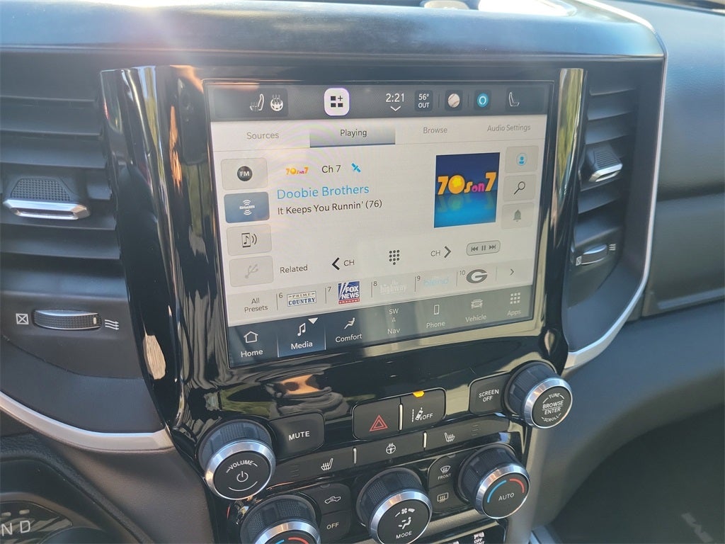 **CLEAN CARFAX**, **ONE OWNER**, **NAVIGATION**, **BACKUP CAMERA**, **Bluetooth®, HANDS-FREE**, **CRUISE CONTROL**, **PUSH BUTTON START**, **MULTI-ZONE CLIMATE CONTROL**, **POWER WINDOWS**, **POWER LOCKS**, **STEERING WHEEL CONTROLS**, **TRAILER HITCH**, **4X4**, **APPLE CARPLAY**, **ANDROID AUTO**, **ALLOY WHEELS**, **SATILITE RADIO**, 1500 Big Horn/Lone Star POWER BED COVER, 4D Crew Cab, HEMI 5.7L V8 Multi Displacement VVT, 4WD, 115V Auxiliary Power Outlet, 115V Auxiliary Rear Power Outlet, 2nd Row In Floor Storage Bins, 3 Rear Seat Head Restraints, 3.21 Rear Axle Ratio, 4 Way Front Headrests, 4-Wheel Disc Brakes, 400W Inverter, 48V Belt Starter Generator, 4G LTE Wi-Fi Hot Spot, 6 Speakers, 8.4 Touchscreen Display, 9 Amplified Speakers w/Subwoofer, ABS brakes, Advanced Brake Assist, Air Conditioning, Air Conditioning ATC w/Dual Zone Control, All R1 High Radios, All Radio Equipped Vehicles, Alloy wheels, AM/FM radio, Anti-Spin Differential Rear Axle, Apple CarPlay, Auto-Dimming Exterior Driver Mirror, Auto-Dimming Rear-View Mirror, Bed Utility Group, Big Horn Badge, Big Horn Level 2 Equipment Group, Black Exterior Mirrors, Black Premium Power Mirrors, Bluetooth® Handsfree Phone & Audio, Brake assist, Bumpers: chrome, Class IV Receiver Hitch, Cloth Bench Seat, Cluster 3.5 TFT Color Display, Cluster 7.0 TFT Color Display, Compass, Connected Travel & Traffic Services, Connectivity - US/Canada, Convex Wide-Angle Mirror Insert, Delay-off headlights, Disassociated Touchscreen Display, Dome Dual LED Reading Lamp, Driver door bin, Dual front impact airbags, Dual front side impact airbags, Dual-Pane Panoramic Sunroof, Electronic Stability Control, Emergency communication system: SiriusXM Guardian, Exterior Mirrors Courtesy Lamps, Exterior Mirrors w/Heating Element, Exterior Mirrors w/Supplemental Signals, For Details, Visit DriveUconnect.com, Front anti-roll bar, Front Center Armrest w/Storage, Front fog lights, Front reading lights, Front Seat Back Map Pockets, Front wheel independent suspension, Full Speed Forward Collision Warning Plus, Fully automatic headlights, Global Telematics Box Module (TBM), Glove Box Lamp, Google Android Auto, GPS Antenna Input, GPS Navigation, HD Radio, Heated door mirrors, Heated Front Seats, Heated Steering Wheel, Illuminated entry, Integrated Center Stack Radio, Integrated Voice Command w/Bluetooth®, Lane Keep Assist, Leather steering wheel, Level 1 Safety Group, Low tire pressure warning, Media Hub w/2 Charge Only USBs, MOPAR 4 Adjustable Cargo Tie-Down Hooks, MOPAR Deployable Bed Step, MOPAR Spray In Bedliner, Occupant sensing airbag, Outside temperature display, Overhead airbag, Overhead console, Overhead LED Lamps, Panic alarm, ParkSense Front/Rear Park Assist w/Stop, ParkView Rear Back-Up Camera, Passenger door bin, Passenger vanity mirror, Pedestrian Emergency Braking, Pick-Up Box Lighting, Power 2-Way Driver Lumbar Adjust, Power 8-Way Driver Seat, Power Adjustable Pedals, Power door mirrors, Power steering, Power windows, Power-Folding Mirrors, Premium Overhead Console, Protection Group, Quick Order Package 27Z Big Horn, Radio data system, Radio: Uconnect 3 w/5 Display, Radio: Uconnect 5 Nav w/8.4 Display, Radio: Uconnect 5 W w/8.4 Display, Rear 60/40 Folding Seat, Rear anti-roll bar, Rear Dome w/On/Off Switch Lamp, Rear Power Sliding Window, Rear seat center armrest, Rear step bumper, Rear Underseat Compartment Storage, Rear Underseat Compartment Storage (DISC), Rear Window Defroster, Remote keyless entry, Remote Start System, Security Alarm, SiriusXM Radio Service, SiriusXM Satellite Radio, SiriusXM w/360L, Speed control, Split folding rear seat, Steering wheel mounted audio controls, Sun Visors w/Illuminated Vanity Mirrors, Tachometer, Telescoping steering wheel, Tilt steering wheel, Tow Hooks, Traction control, Trip computer, Universal Garage Door Opener, USB Host Flip, Variably intermittent wipers, Voltmeter, Wheels: 18 x 8 Cast-Aluminum Painted. CARFAX One-Owner. Murray CDJR Superstor