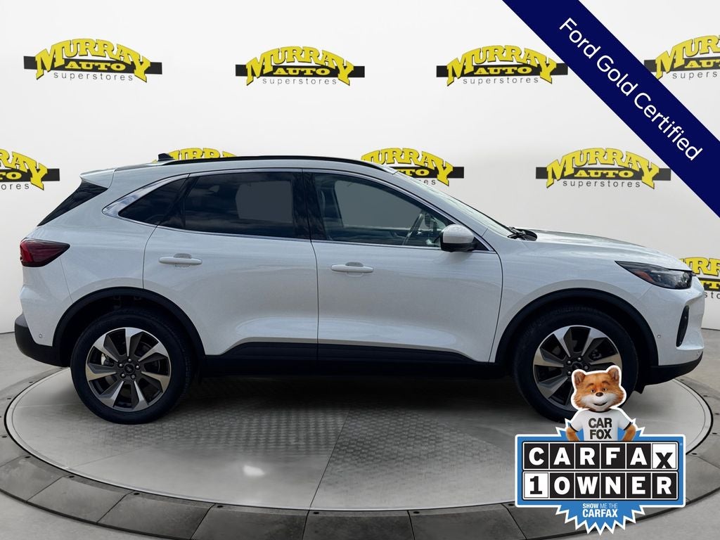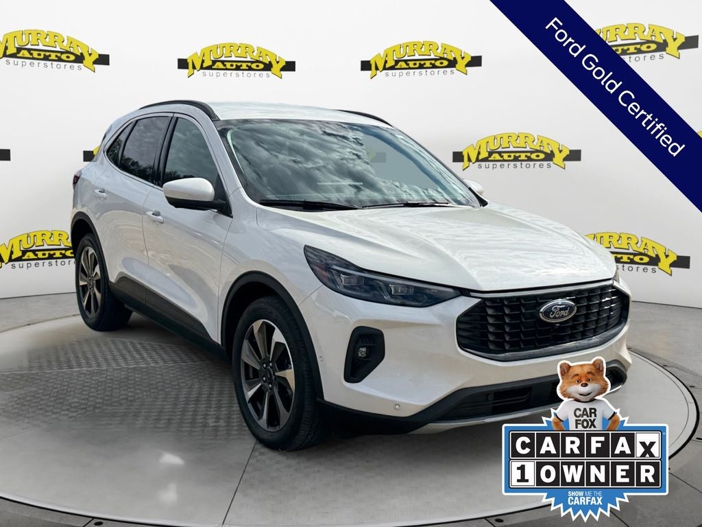 CARFAX One-Owner. Murray Ford Superstore of Starke is pumped up to offer this great-looking 2024 Ford Escape Hybrid in Star White Metallic Tri-Coat This vehicle is readily available and comes with the following Equipment Group 600A (Electronic Fuel Door Release, Neutral Towing Capability, and Pedestrian Alert Sounder), Premium Technology Package (Active Park Assist 2.0, HD Radio, Head-Up Display, Heated Leather-Trimmed Front Sport Contour Seats, and Radio: B&O Sound System by Bang & Olufsen), Ford Gold Certified Certified, 2.5L iVCT, 2.91 Axle Ratio, 4-Wheel Disc Brakes, 6 Speakers, ABS brakes, Air Conditioning, Alloy wheels, AM/FM radio: SiriusXM, AM/FM Stereo, Auto High-beam Headlights, Auto-dimming Rear-View mirror, Automatic temperature control, Brake assist, Bumpers: body-color, Compass, Delay-off headlights, Driver door bin, Driver vanity mirror, Dual front impact airbags, Dual front side impact airbags, Electronic Stability Control, Emergency communication system: SYNC 4 911 Assist, Exterior Parking Camera Rear, FordPass Connect, Four wheel independent suspension, Front & Rear Floor Liners w/Carpet Mats, Front anti-roll bar, Front Bucket Seats, Front Center Armrest, Front dual zone A/C, Front fog lights, Front License Plate Bracket, Front reading lights, Fully automatic headlights, Garage door transmitter, Heated ActiveX Trimmed Front Sport Contour Bucket Seats, Heated door mirrors, Heated front seats, Heated steering wheel, Illuminated entry, Knee airbag, Low tire pressure warning, Memory seat, Navigation system: Connected Navigation, Occupant sensing airbag, Outside temperature display, Overhead airbag, Overhead console, Panic alarm, Passenger door bin, Passenger vanity mirror, Power door mirrors, Power driver seat, Power Liftgate, Power passenger seat, Power steering, Power windows, Radio data system, Rain sensing wipers, Rear anti-roll bar, Rear reading lights, Rear seat center armrest, Rear window defroster, Rear window wiper, Remote keyless entry, Roof rack: rails only, Security system, Speed control, Speed-sensing steering, Speed-Sensitive Wipers, Split folding rear seat, Spoiler, Steering wheel mounted audio controls, SYNC 4 w/Enhanced Voice Recognition, Tachometer, Telescoping steering wheel, Tilt steering wheel, Traction control, Trip computer, Variably intermittent wipers, and Wheels: 19 Machined-Face Aluminum;